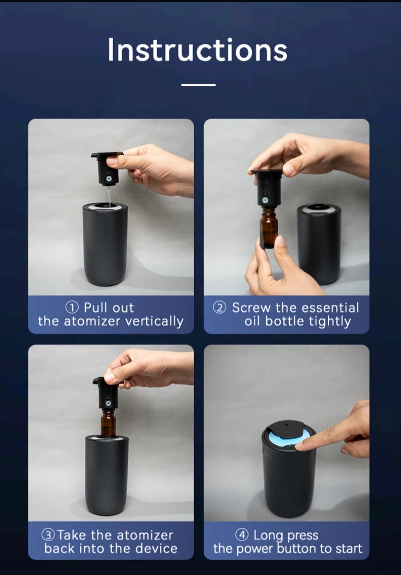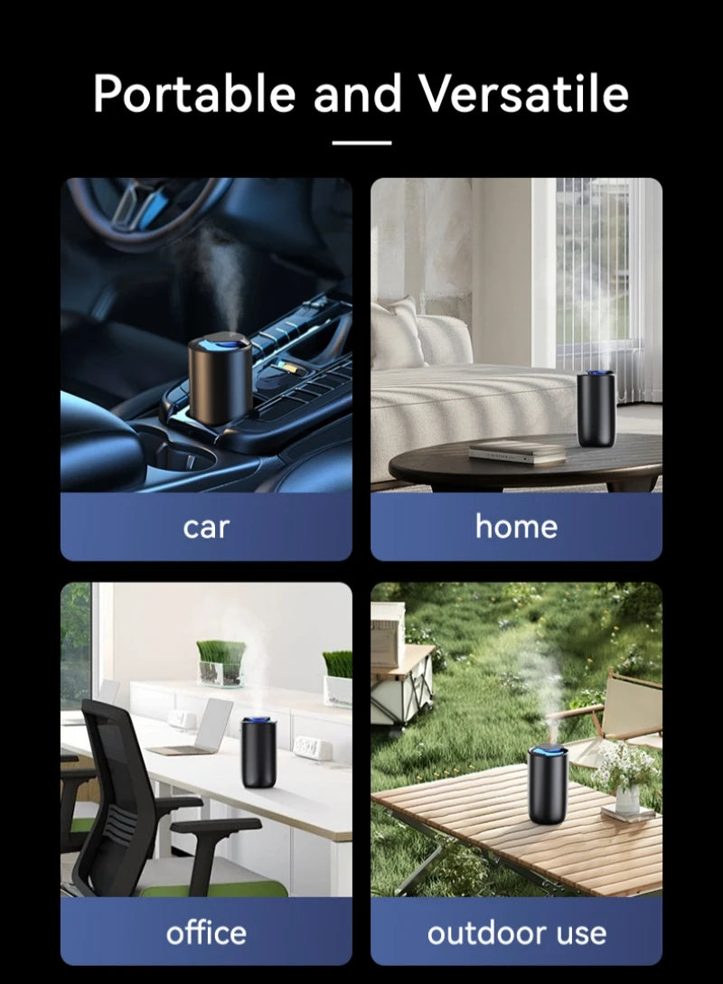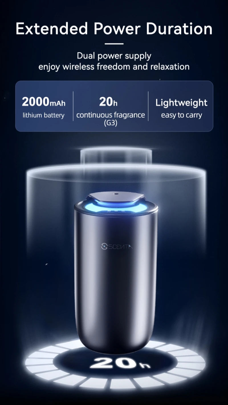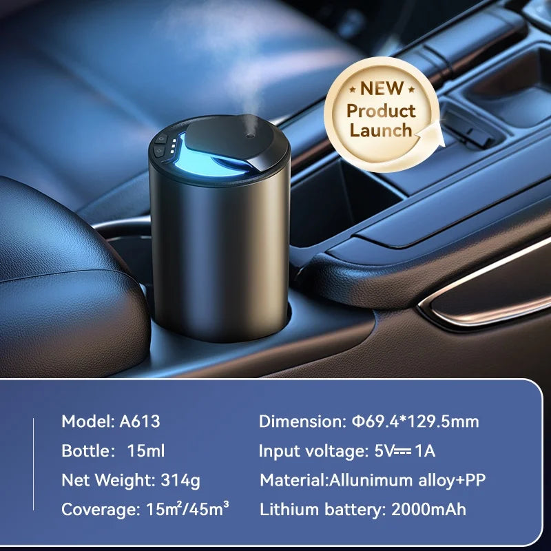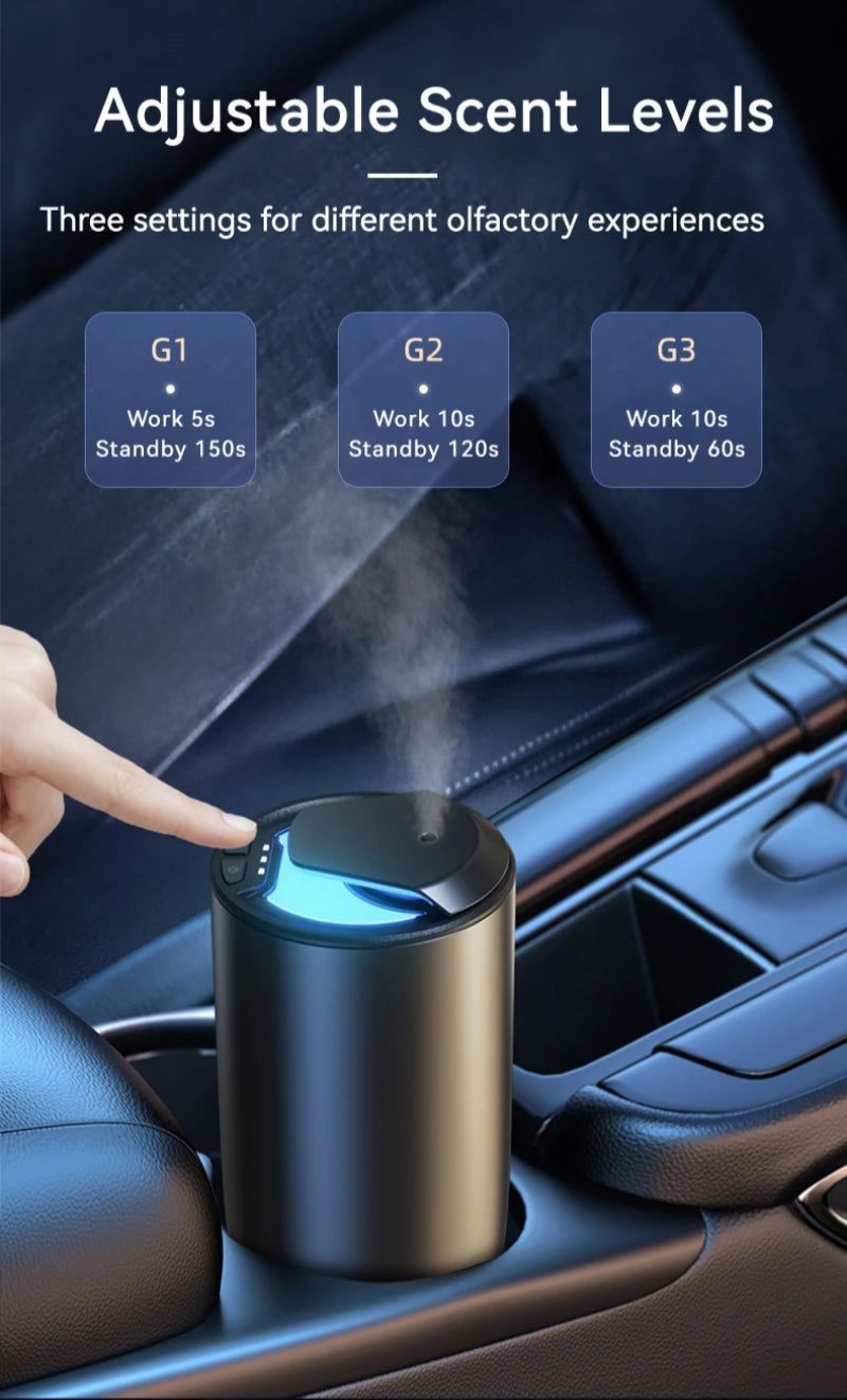 موزع روائح عطري محمول للسيارة، بـإعدادات قابلة للتعديل، تشغيل هادئ، يعمل مع الزيوت الأساسية والزيوت العطرية.