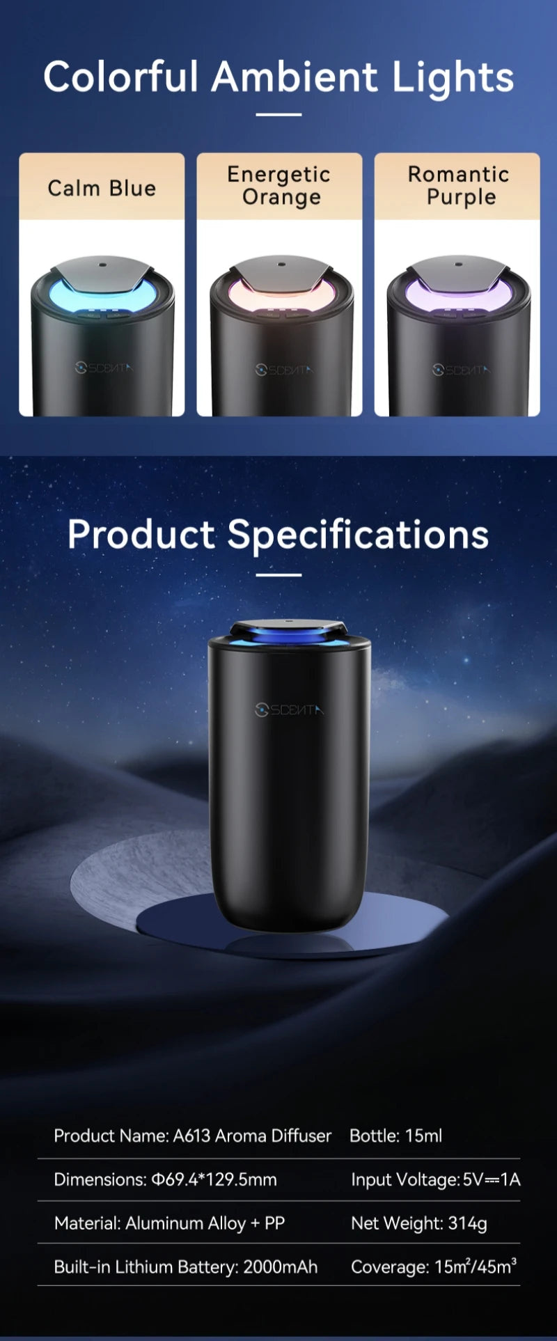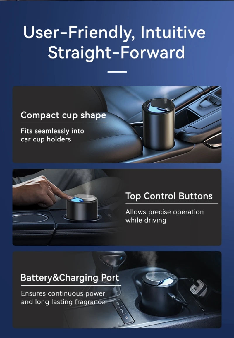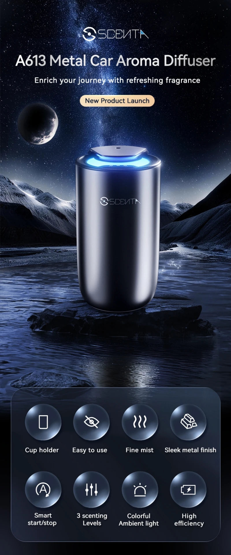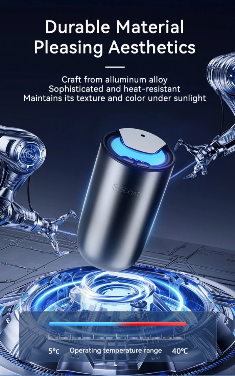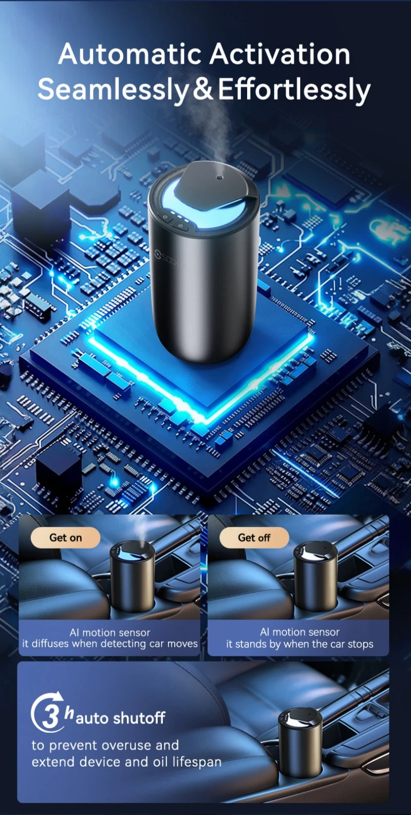 موزع روائح عطري محمول للسيارة، بـإعدادات قابلة للتعديل، تشغيل هادئ، يعمل مع الزيوت الأساسية والزيوت العطرية.